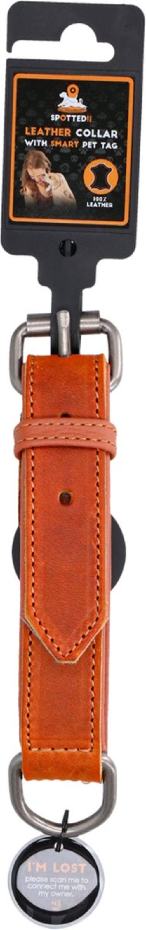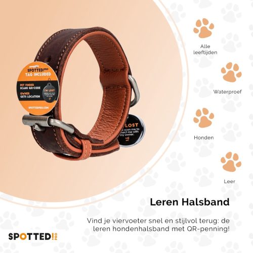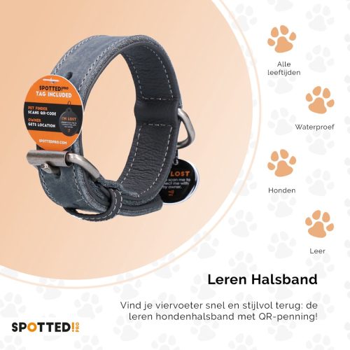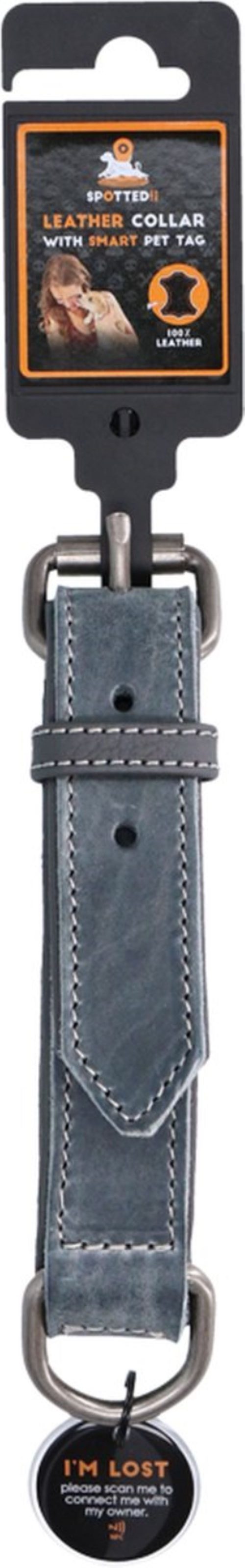 • Lederen Honden Halsband Spotted! Pro met Spotted! Pro Tag Zwart